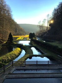 In unseren Quellwasserteichen aufgezogene Forellen, Lachsforellen und Saiblinge als Setzlinge oder Speisefisch